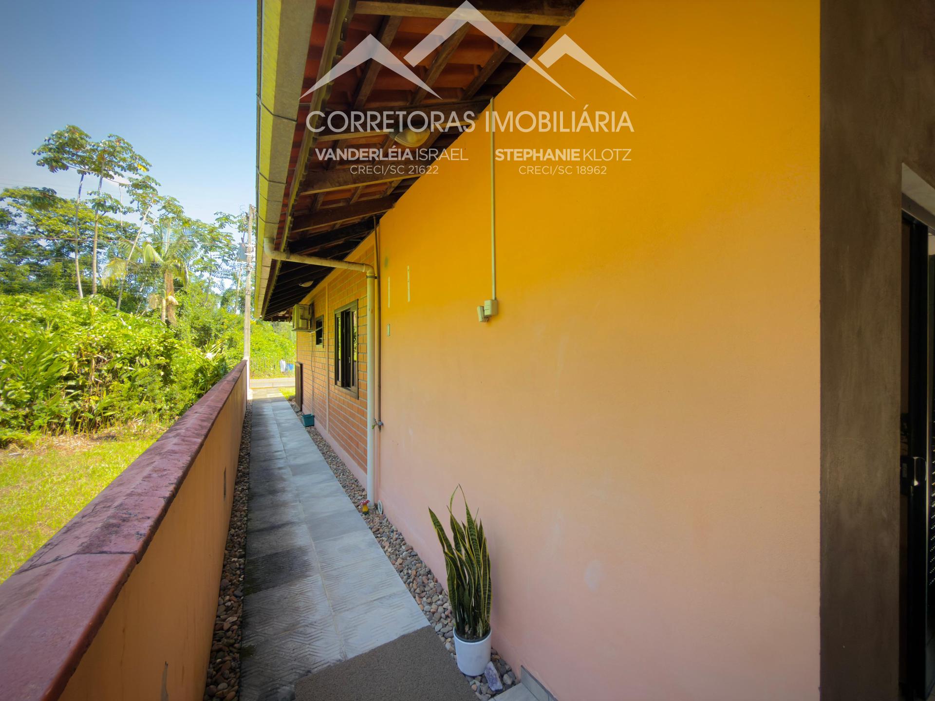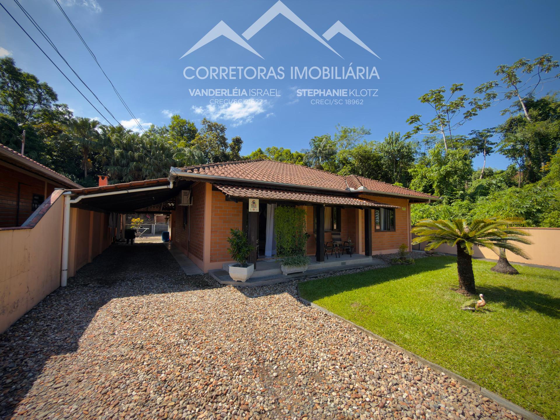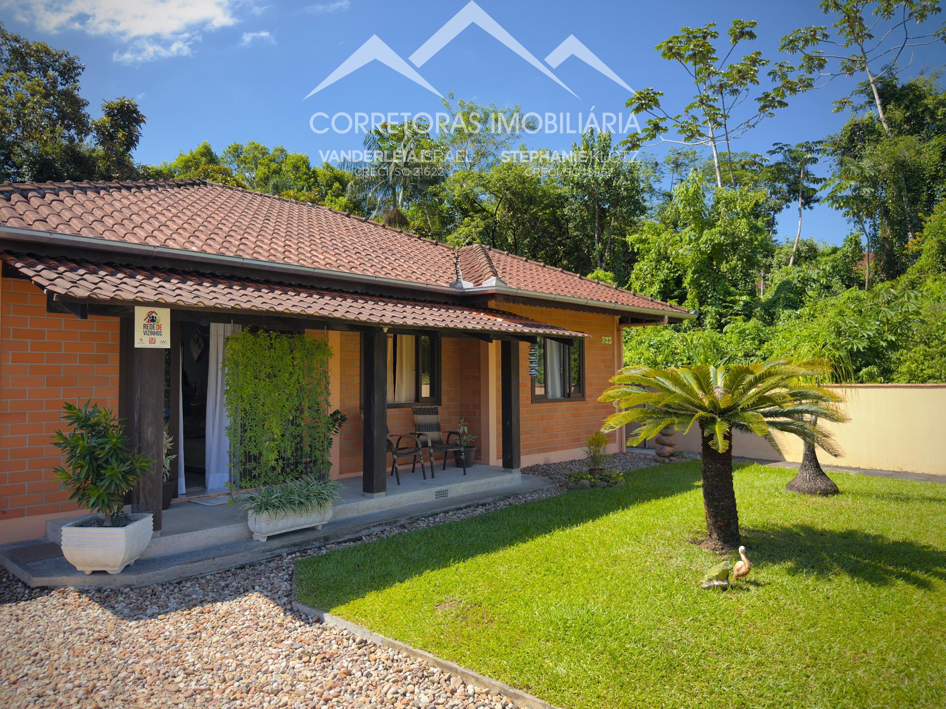 Casa térrea em Testo Alto, Pomerode/SC, com área verde permanente ao lado.