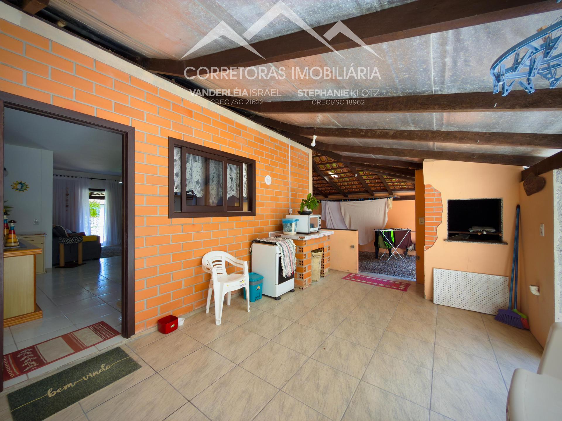 A casa principal conta com 3 quartos, sala de estar e jantar, cozinha com móveis planejados, lavanderia, banheiro, área social com churrasqueira e garagem para 2 carros.